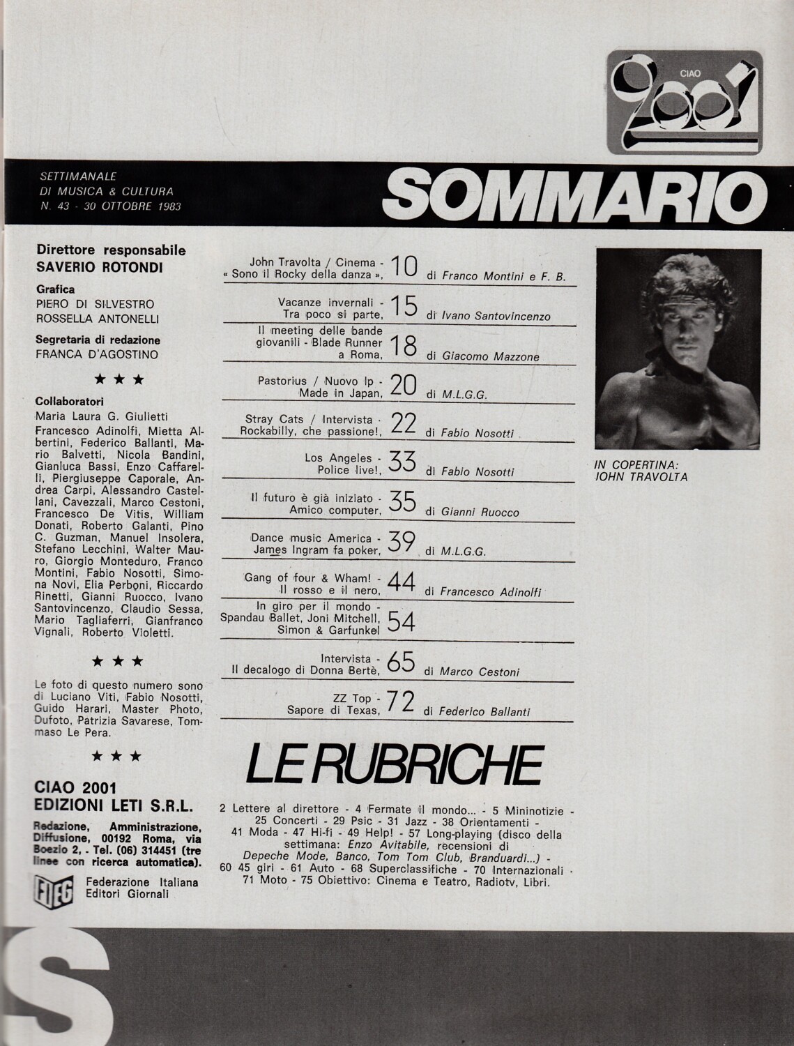 | Titolo: | Rivista Ciao 2001 Anno 1983 n. 43 del 30 Ottobre – In copertina John Travolta |
