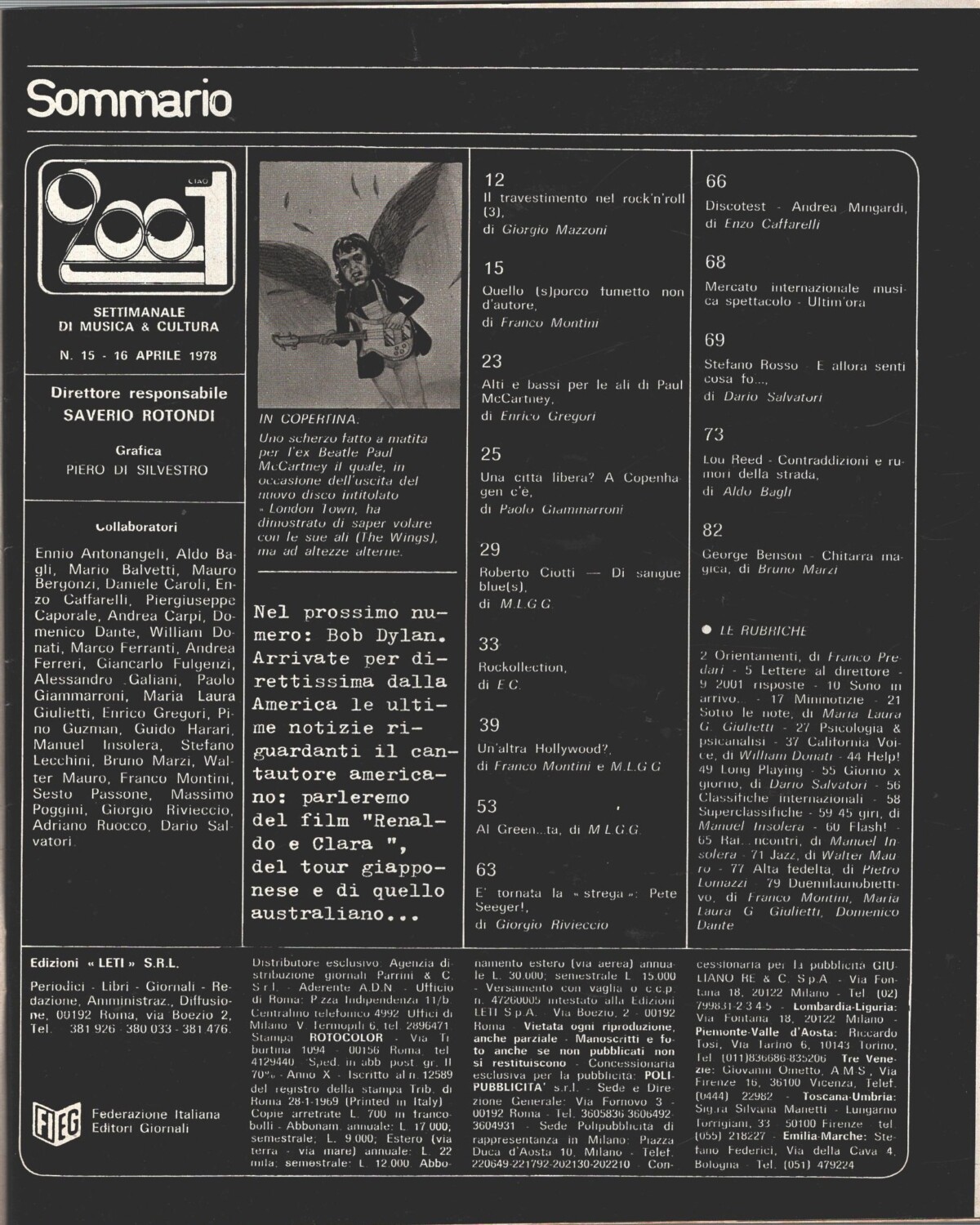 | Titolo: | Rivista Ciao 2001 n. 15 del 16 Aprile 1978 – In Copertina Paul McCartney |