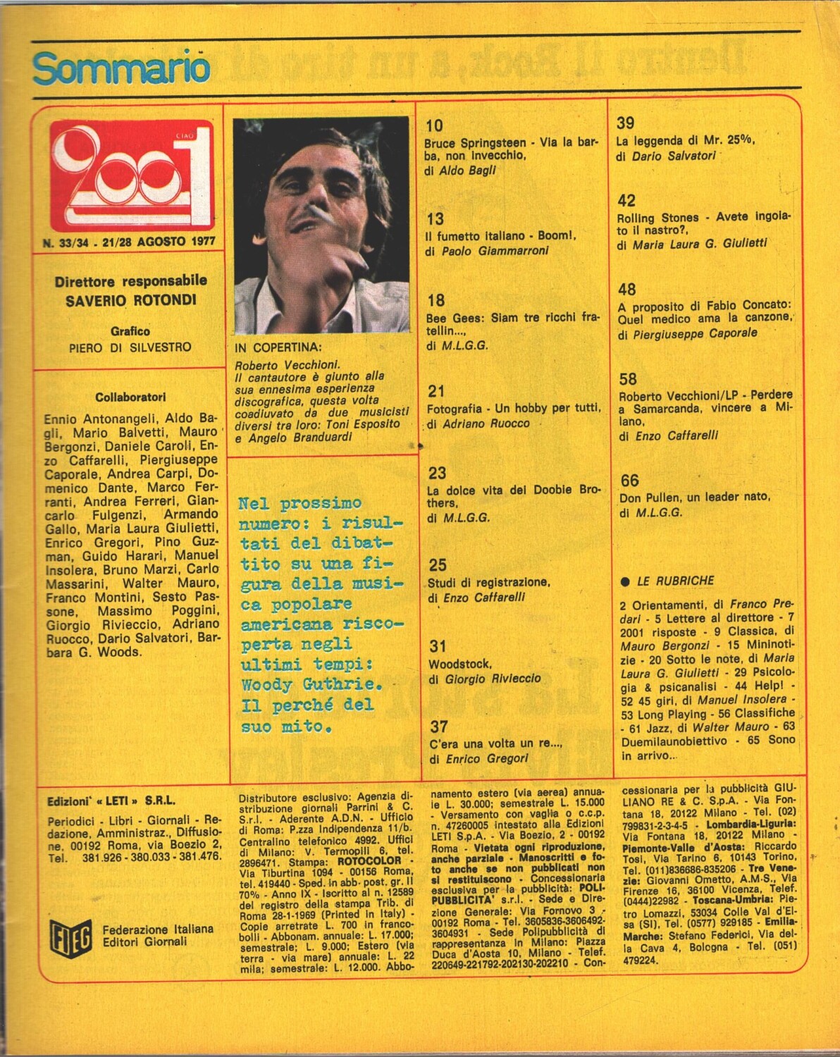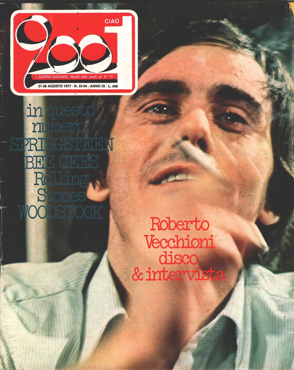 | Titolo: | Rivista Ciao 2001 n. 33-34 del 21-28 Agosto 1977 – In Copertina Roberto Vecchioni |
