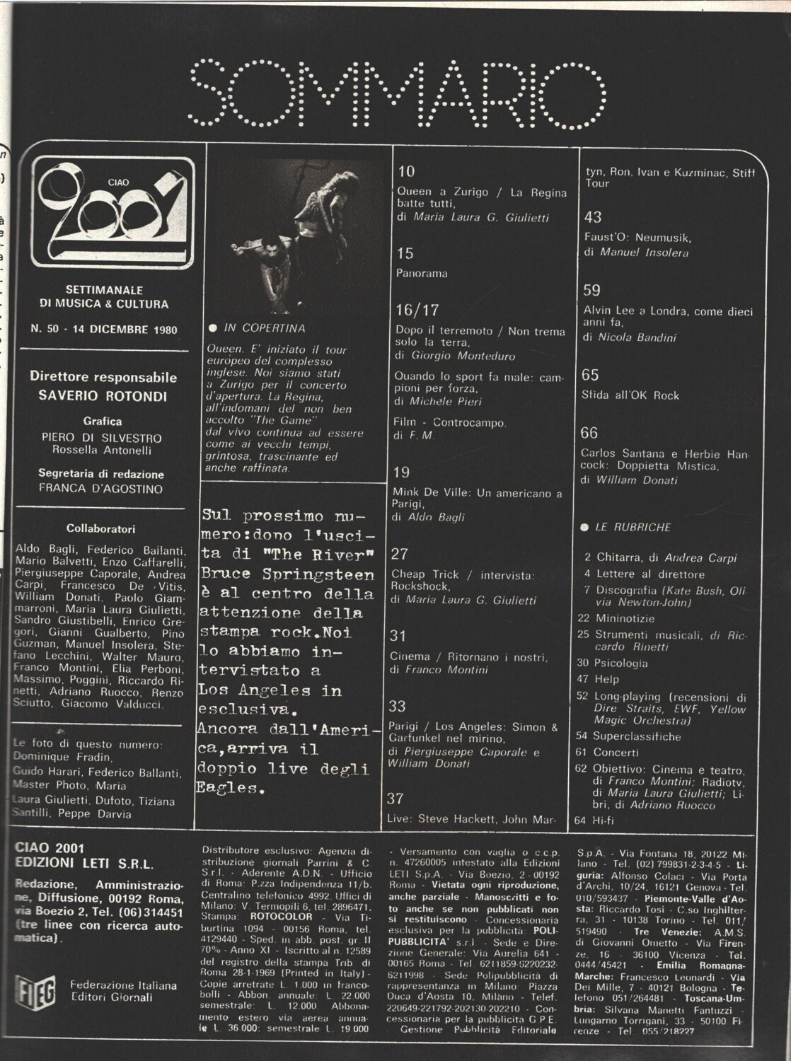 Rivista Ciao 2001 n. 50 del 14 Dicembre 1980 – In Copertina Queen