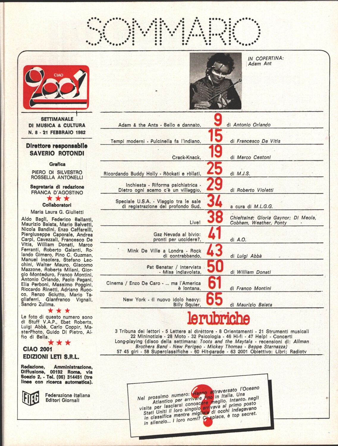 Rivista Ciao 2001 n. 8 del 21 Febbraio 1982 – In Copertina Adam Ant
