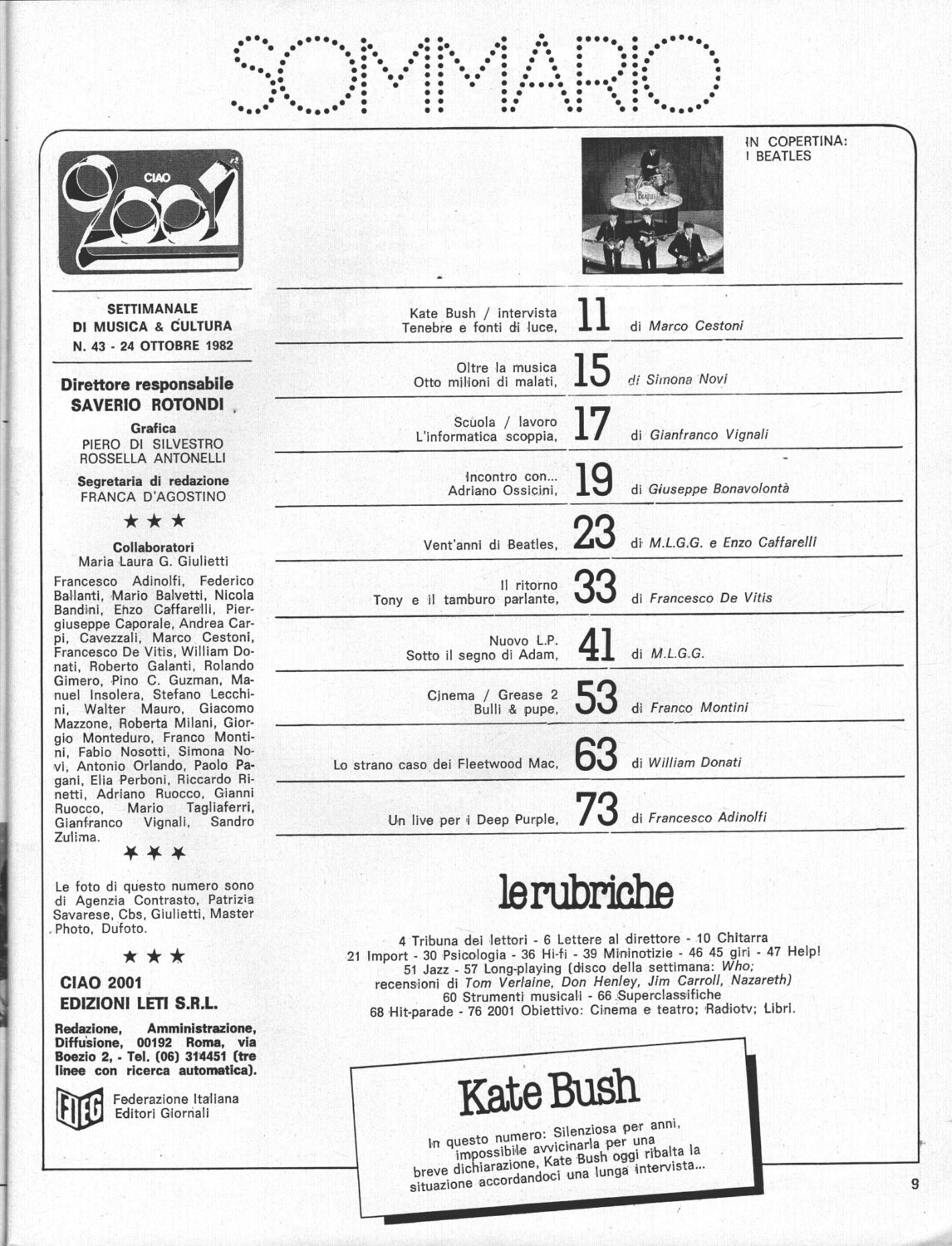 Rivista Ciao 2001 n. 43 del 24 Ottobre 1982 – In Copertina The Beatles