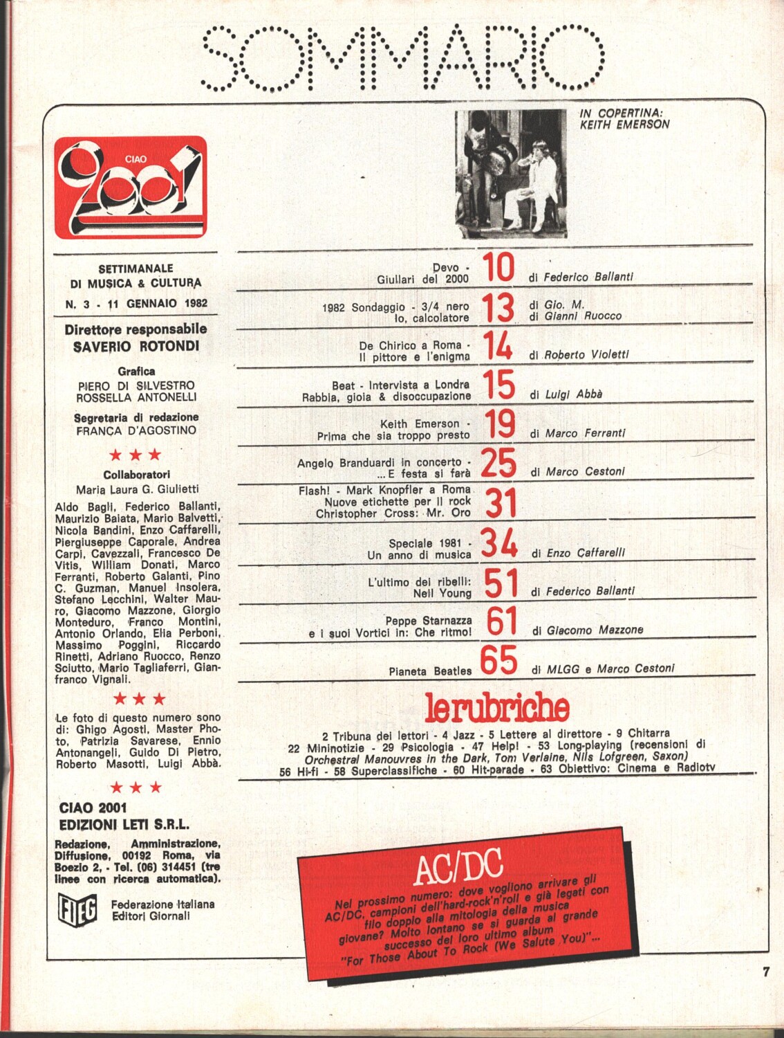 Rivista Ciao 2001 n. 3 del 17 Gennaio 1982 – In Copertina Keith Emerson