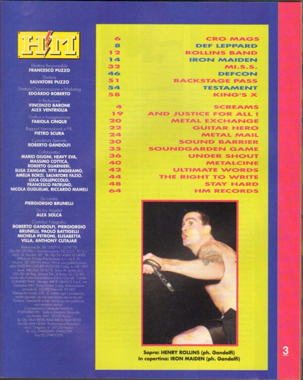 | Titolo: | Rivista HM 1992 n. 125 Anno VII ed. Leti – in copertina Iron Maiden |