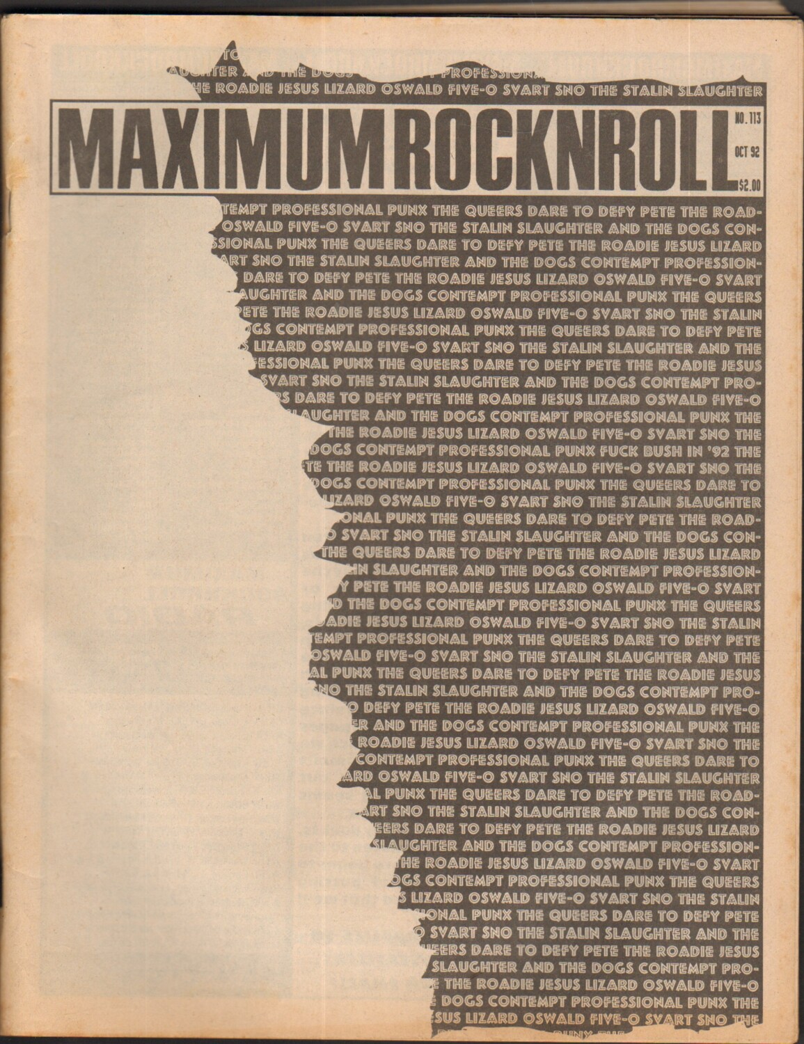 | Titolo: | Rivista Magazine Maximum Rocknroll October 1992 n. 113 – In Inglese |
