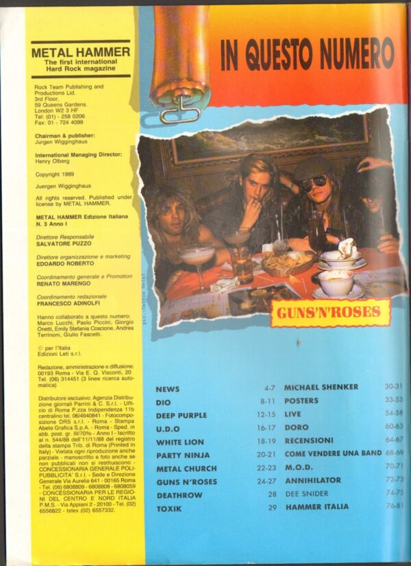 | Titolo: | Rivista Metal Hammer 1989 n. 3 Anno I ed. Leti – in copertina Ronnie Dio |