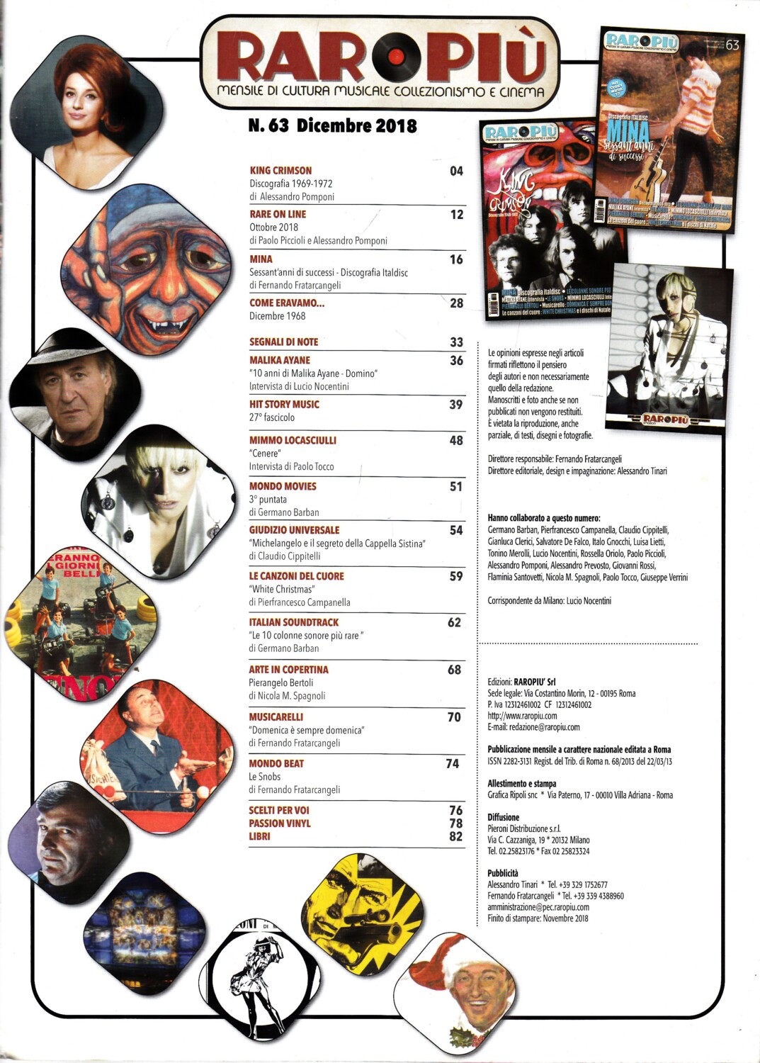 Rivista Raoropiù n. 63 – Dicembre 2018. In copertina: Mina