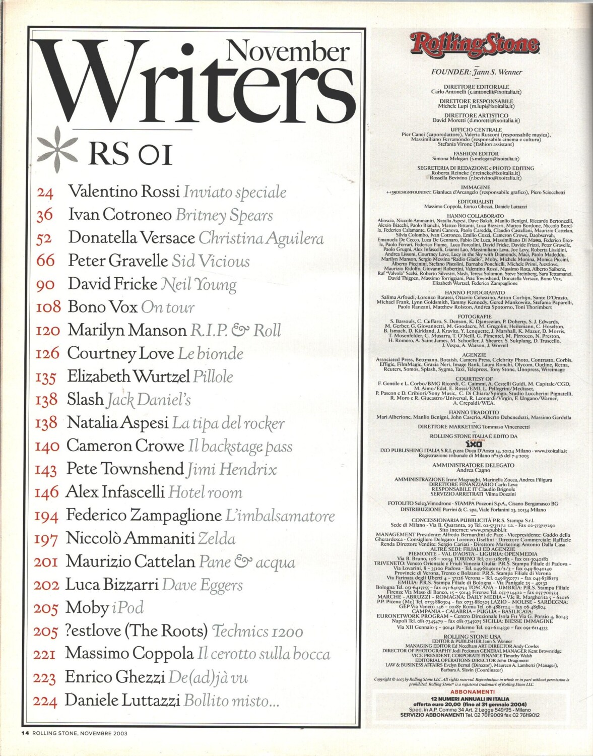 Rivista Rolling Stone n. 1 – Novembre 2003 – In copertina Keith Richards ed. Quadratum