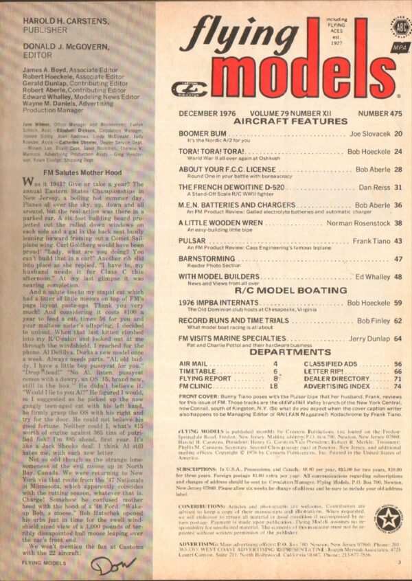 | Titolo: | Rivista Magazine Flying Models December 1976 – In Inglese ed. Flying Models |