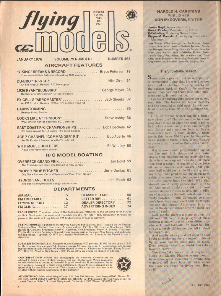 | Titolo: | Rivista Magazine Flying Models January 1976 – In Inglese ed. Flying Models |