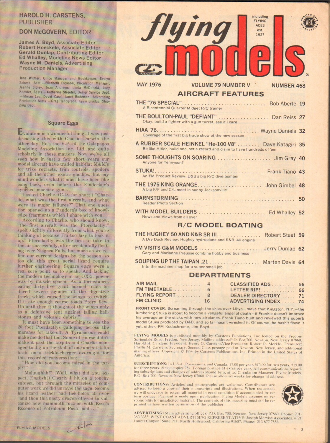 | Titolo: | Rivista Magazine Flying Models May 1976 – In Inglese ed. Flying Models |