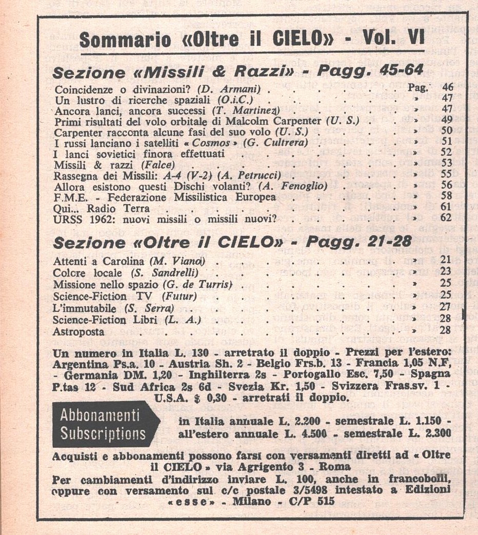 | Titolo: | Rivista Oltre il Cielo n. 103 del 1-15 Maggio 1962 ed. Esse |