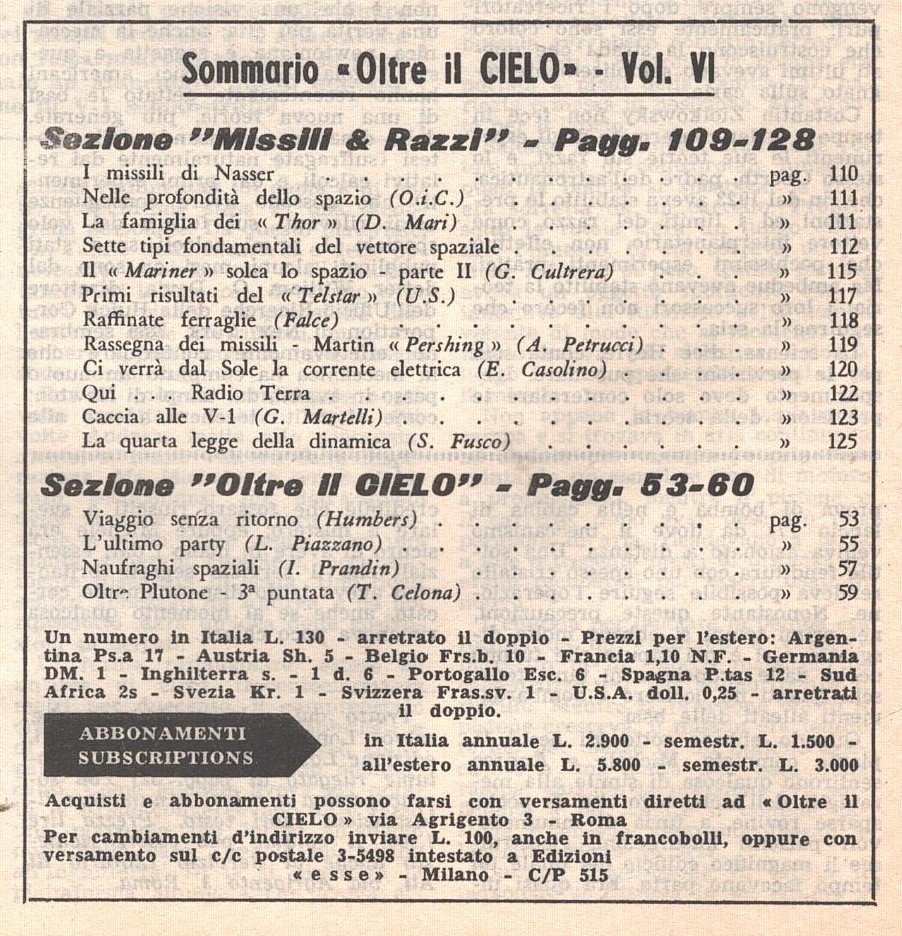 | Titolo: | Rivista Oltre il Cielo n. 107 del 1-31 Luglio 1962 ed. Esse |