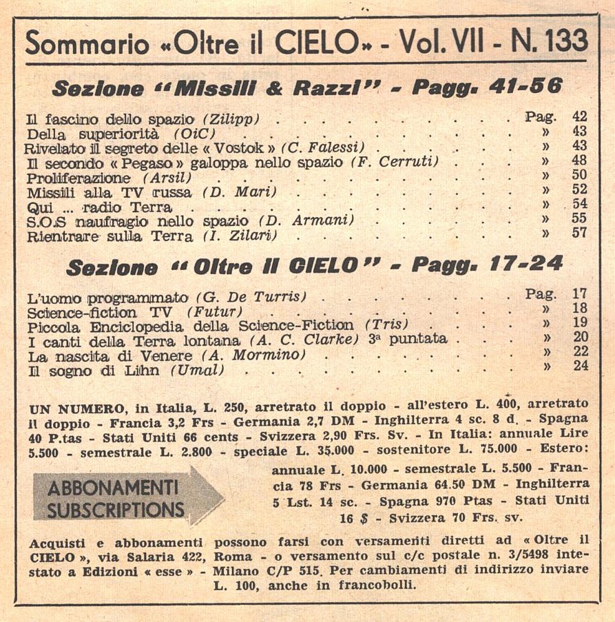 Rivista Oltre il Cielo n. 133 del 1-30 Aprile 1965 ed. Esse
