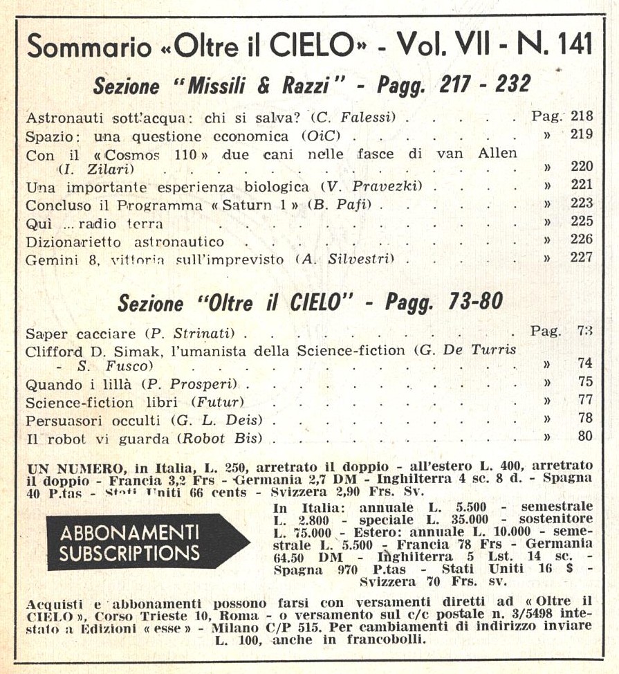 Rivista Oltre il Cielo n. 141 – Aprile 1966 ed. Esse