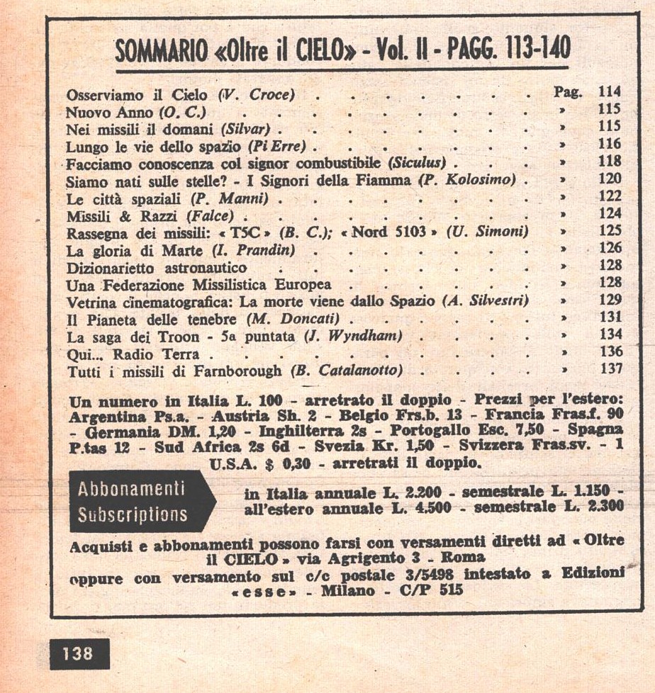 | Titolo: | Rivista Oltre il Cielo n. 25 del 16-30 Settembre 1958 ed. Esse |