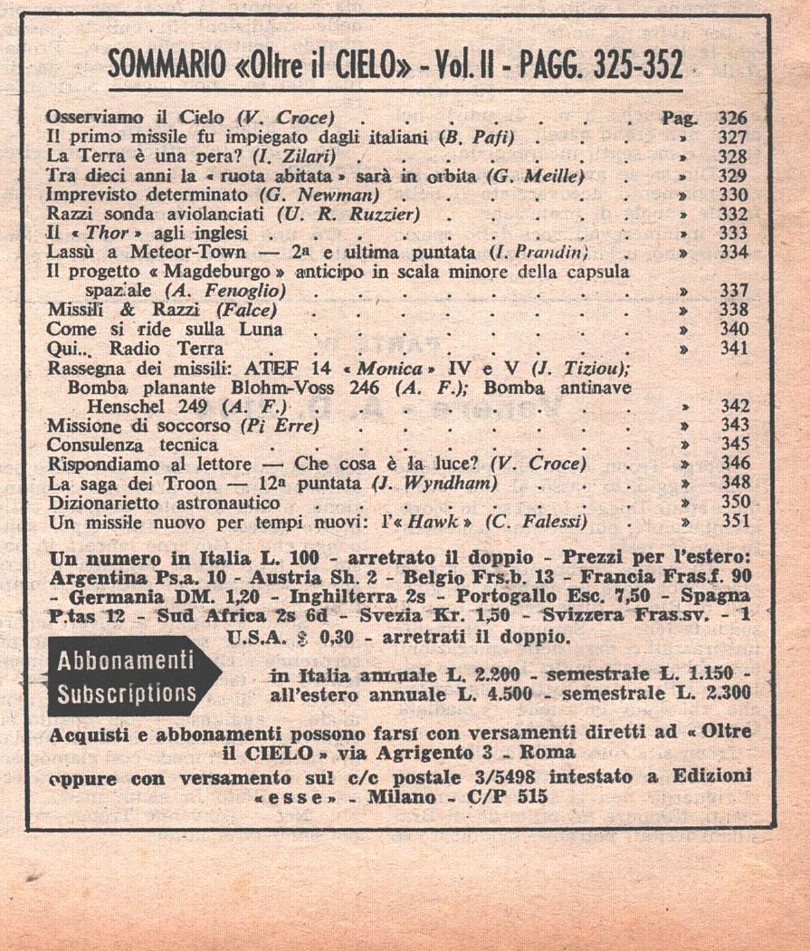 Rivista Oltre il Cielo n. 32 del 1-15 Febbraio 1959 ed. Esse