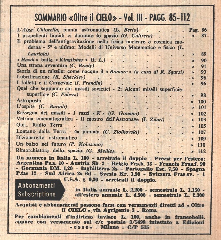 | Titolo: | Rivista Oltre il Cielo n. 44 del 1-15 Settembre 1959 ed. Esse |