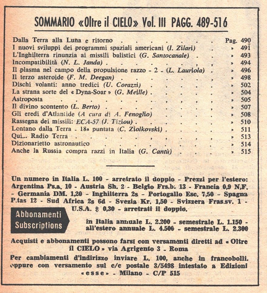 Rivista Oltre il Cielo n. 58 del 16-30 Aprile 1960 ed. Esse