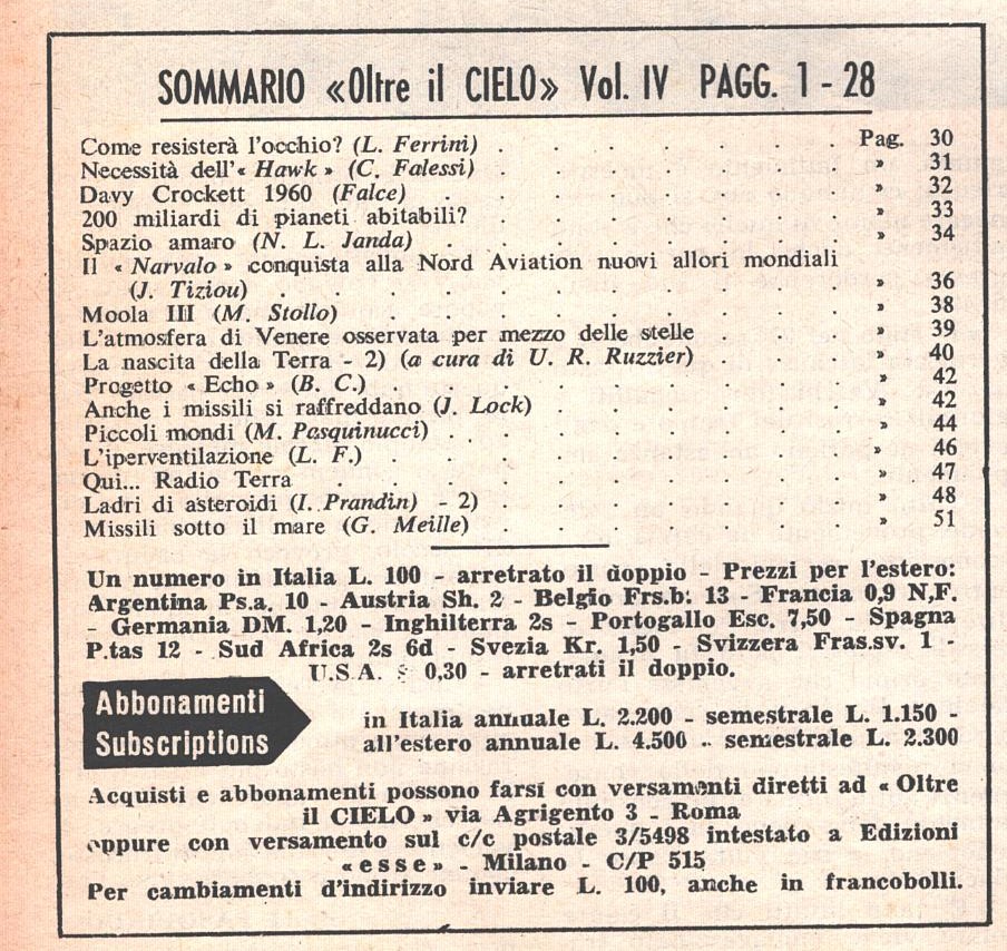 | Titolo: | Rivista Oltre il Cielo n. 62 del 16-30 Giugno 1960 ed. Esse |