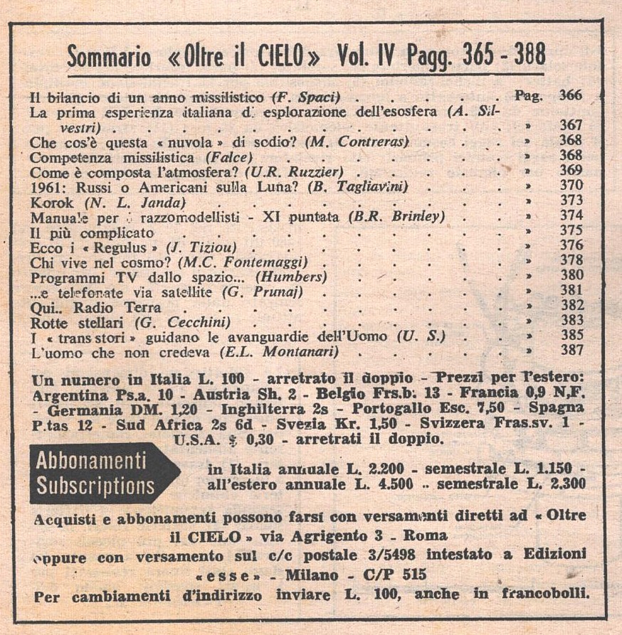 | Titolo: | Rivista Oltre il Cielo n. 76 del 16-31 Gennaio 1961 ed. Esse |