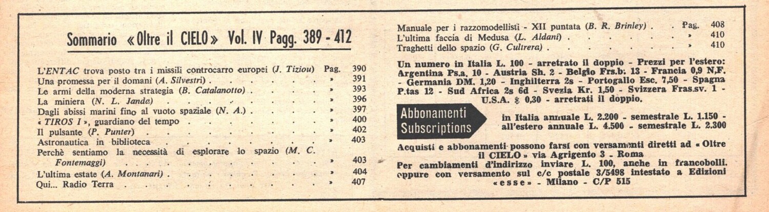 Rivista Oltre il Cielo n. 77 del 1-15 Febbraio 1961 ed. Esse