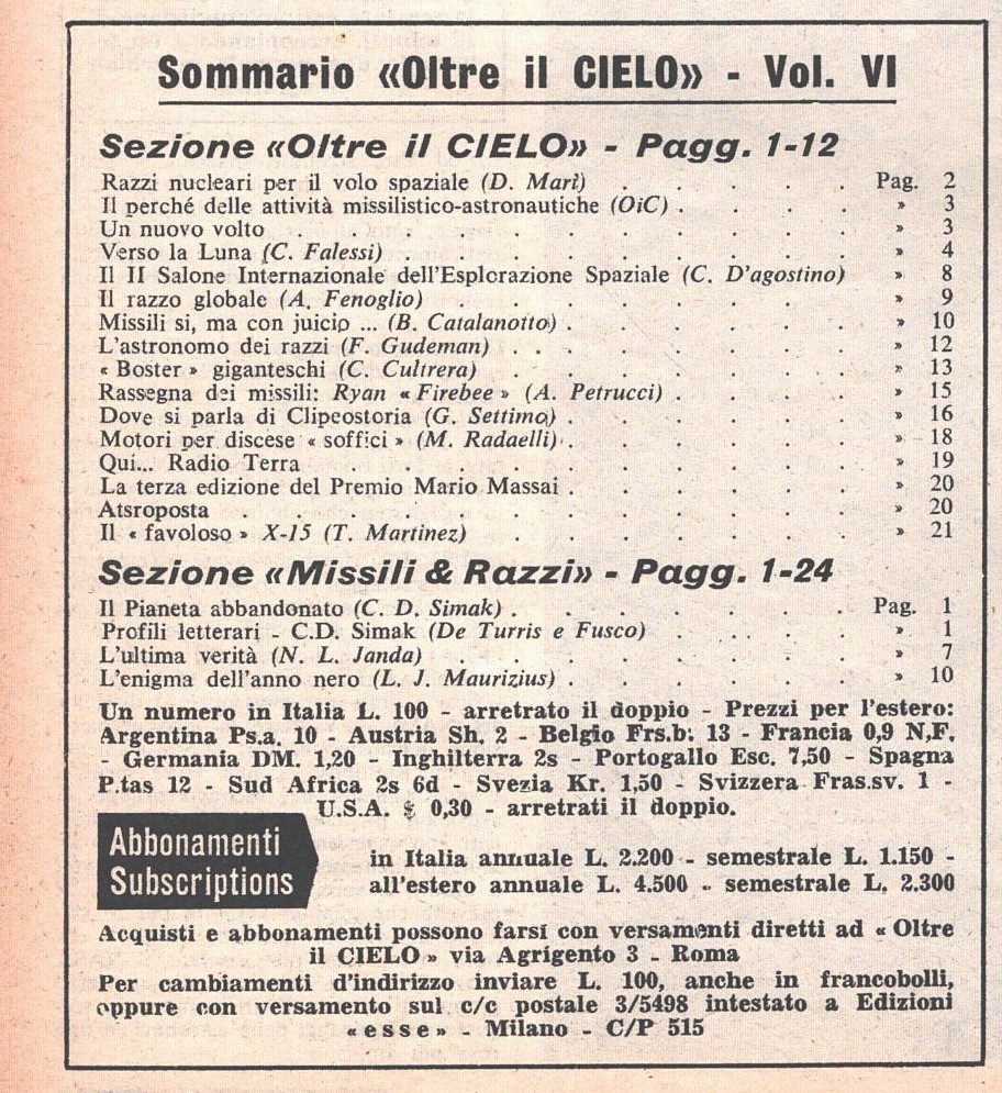 | Titolo: | Rivista Oltre il Cielo n. 101 del 1-15 Aprile 1962 ed. Esse |