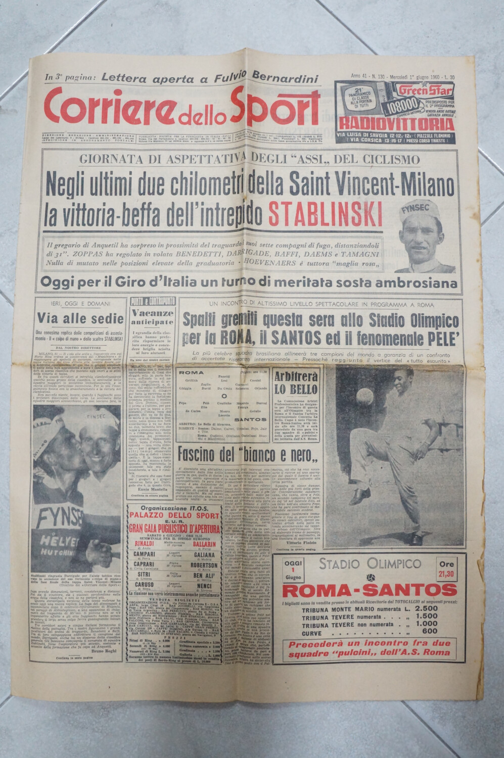| Titolo: | Corriere dello Sport Anno 41 n. 130 del 1 Giugno 1960 – (Pelè) ed. Editoriale Corriere dello Sport |