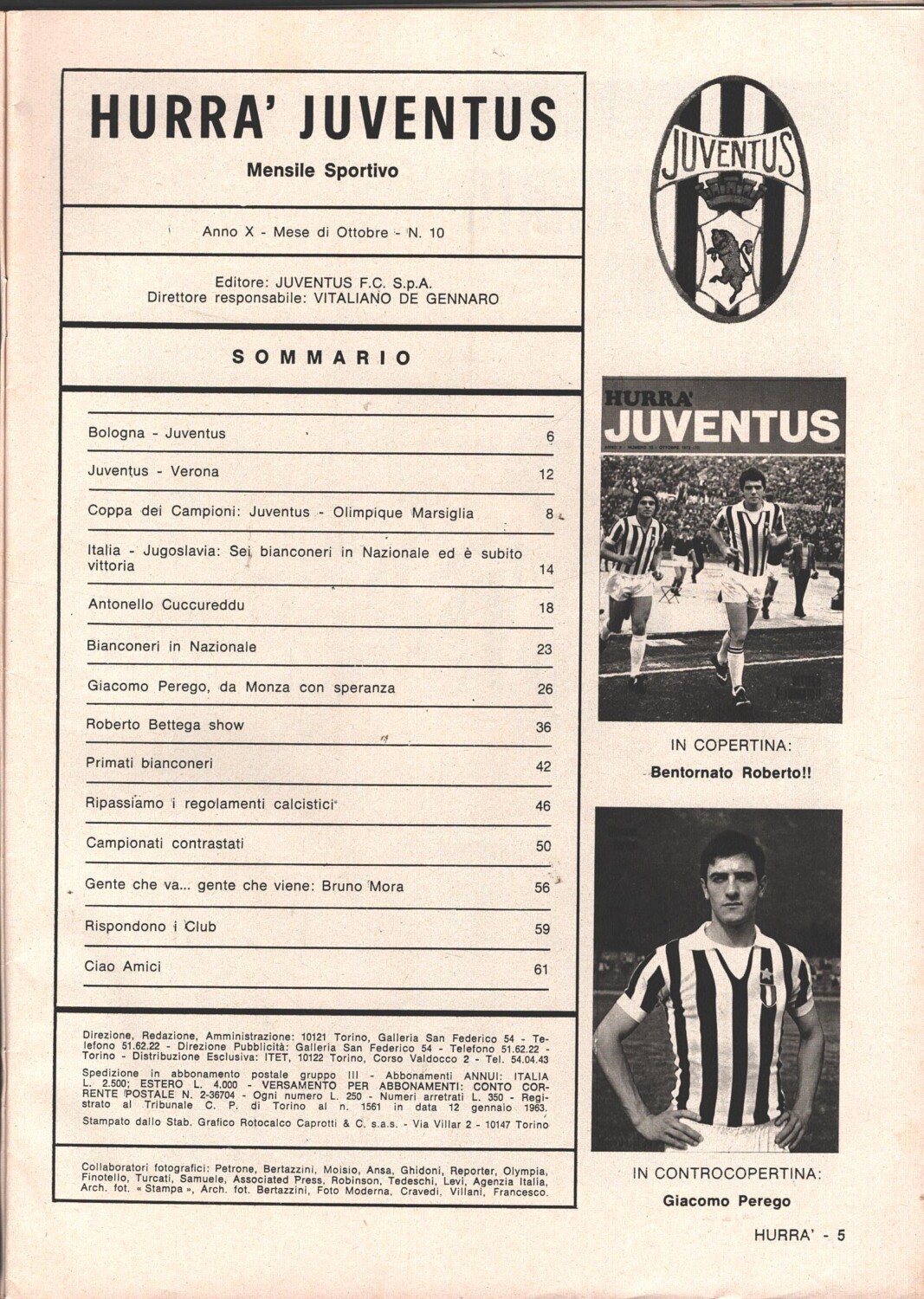 | Titolo: | Hurrà Juventus n. 10 – Ottobre 1972 – In copertina Roberto Bettega |