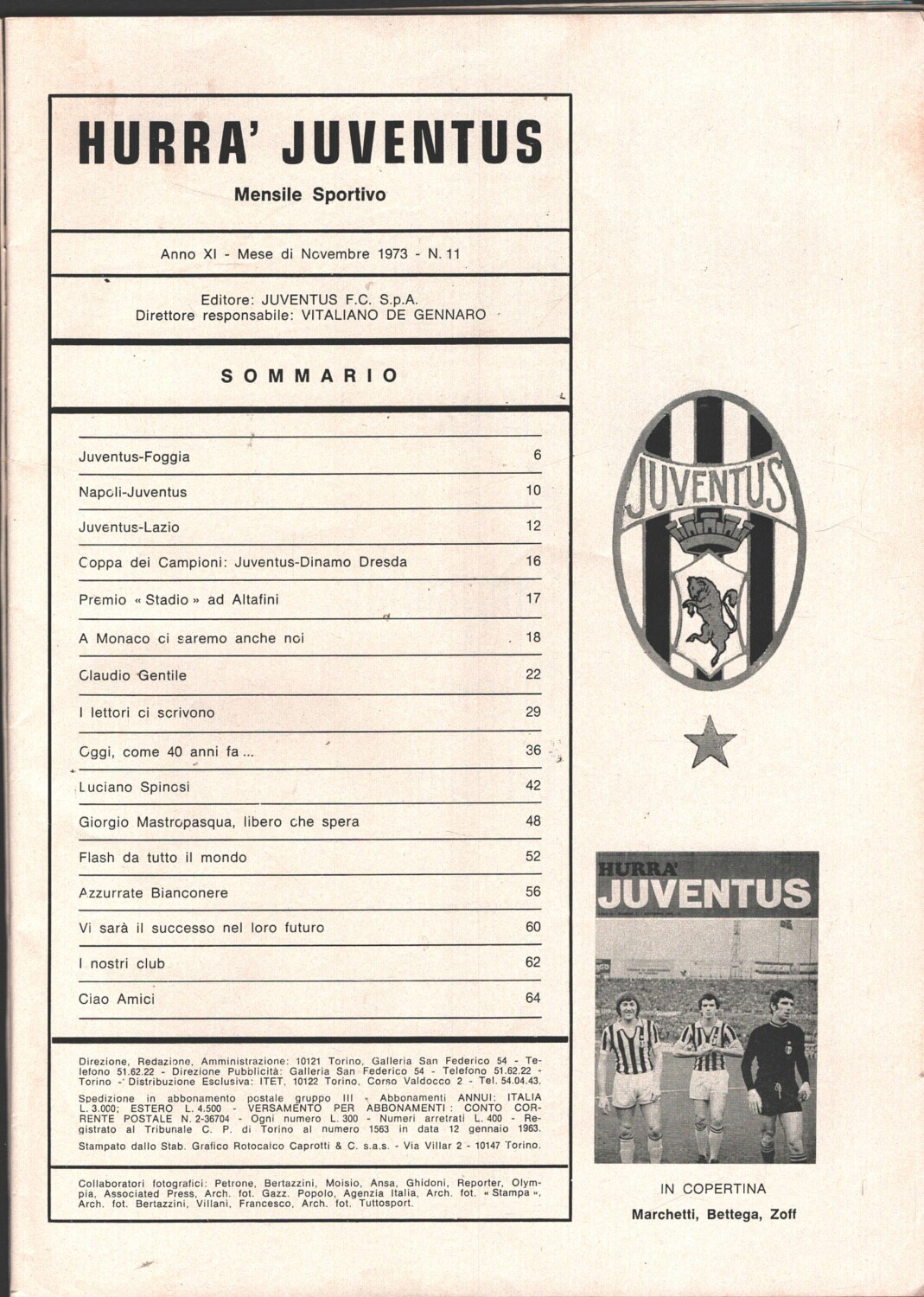 | Titolo: | Hurrà Juventus n. 11 – Novembre 1973 – In copertina Marchetti, Bettega, Zoff |