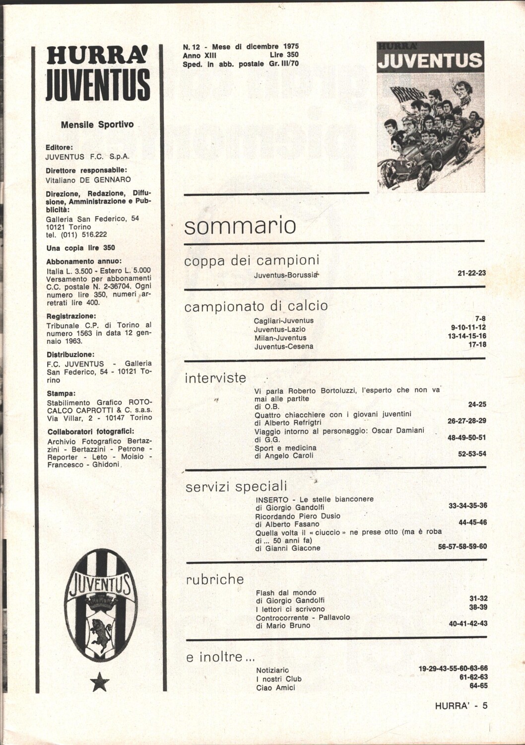 | Titolo: | Hurrà Juventus n. 12 – Dicembre 1975 – In copertina Squadra della Juve |