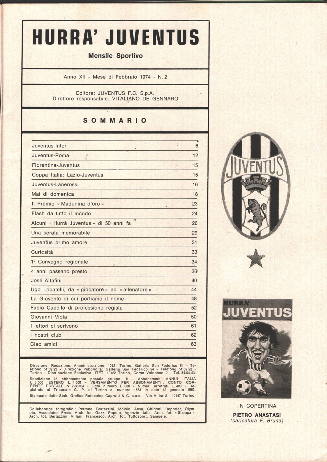 | Titolo: | Hurrà Juventus n. 2 – Febbraio 1974 – In copertina Pietro Anastasi |
