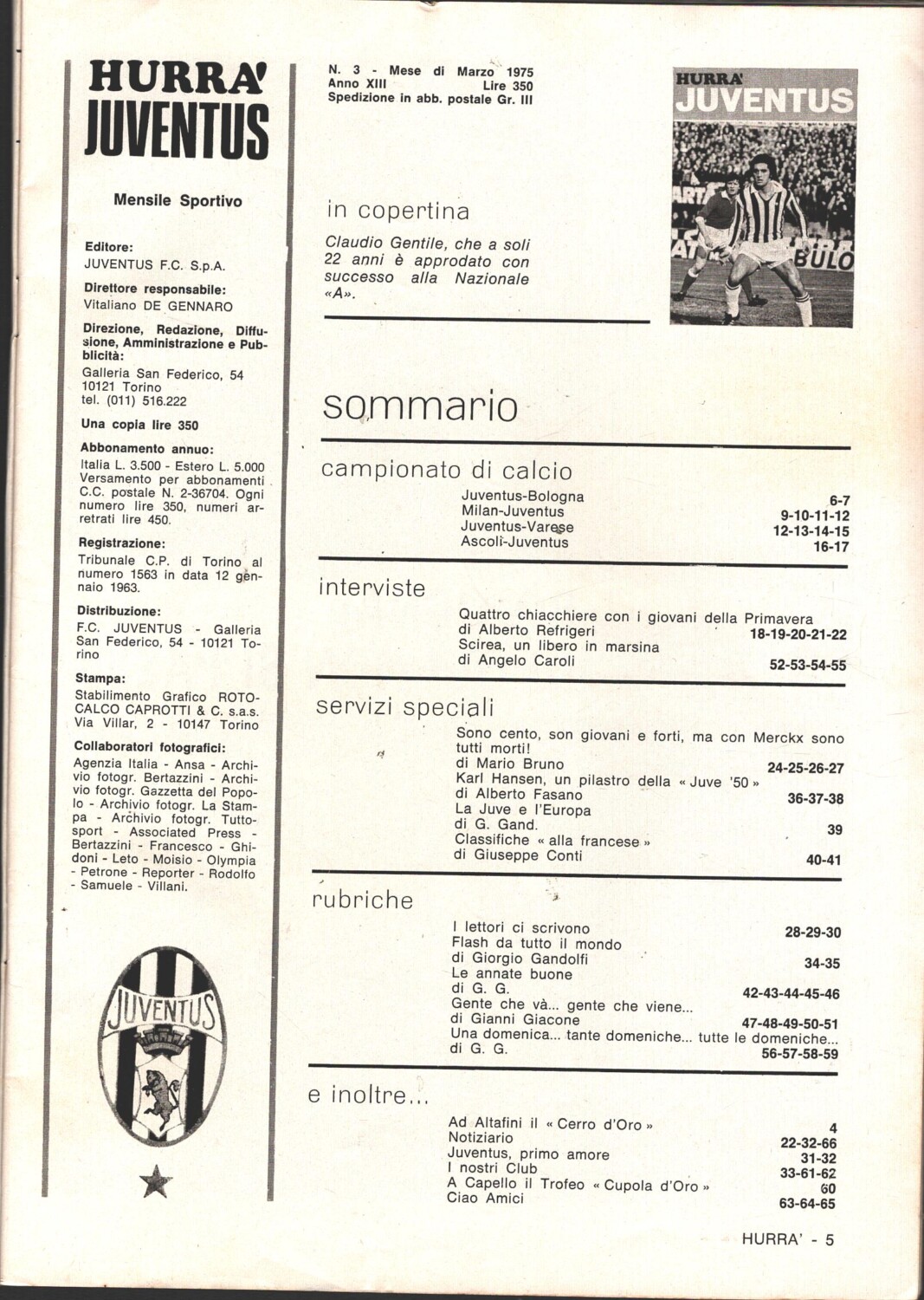 Hurrà Juventus n. 3 – Marzo 1975 – In copertina Claudio Gentile