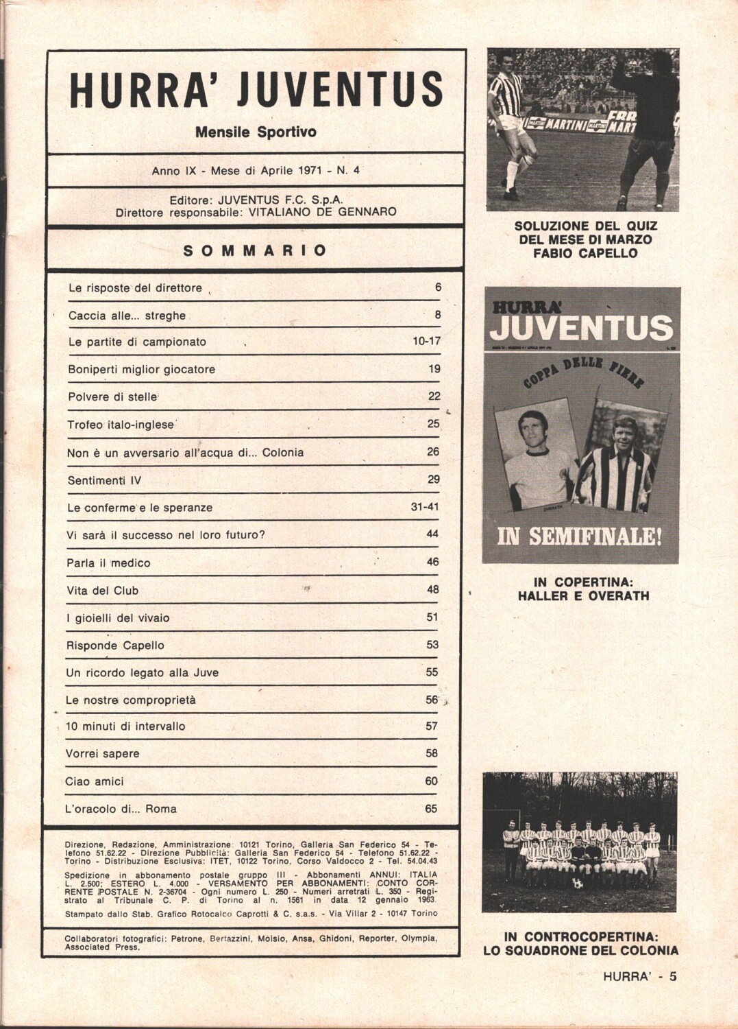 | Titolo: | Hurrà Juventus n. 4 – Aprile 1971 – In copertina Overath, Haller |