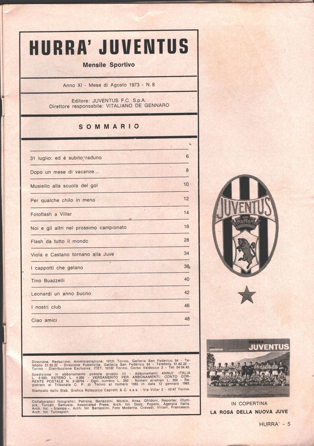 | Titolo: | Hurrà Juventus n. 8 – Agosto 1973 – In copertina la rosa della nuova Juventus |