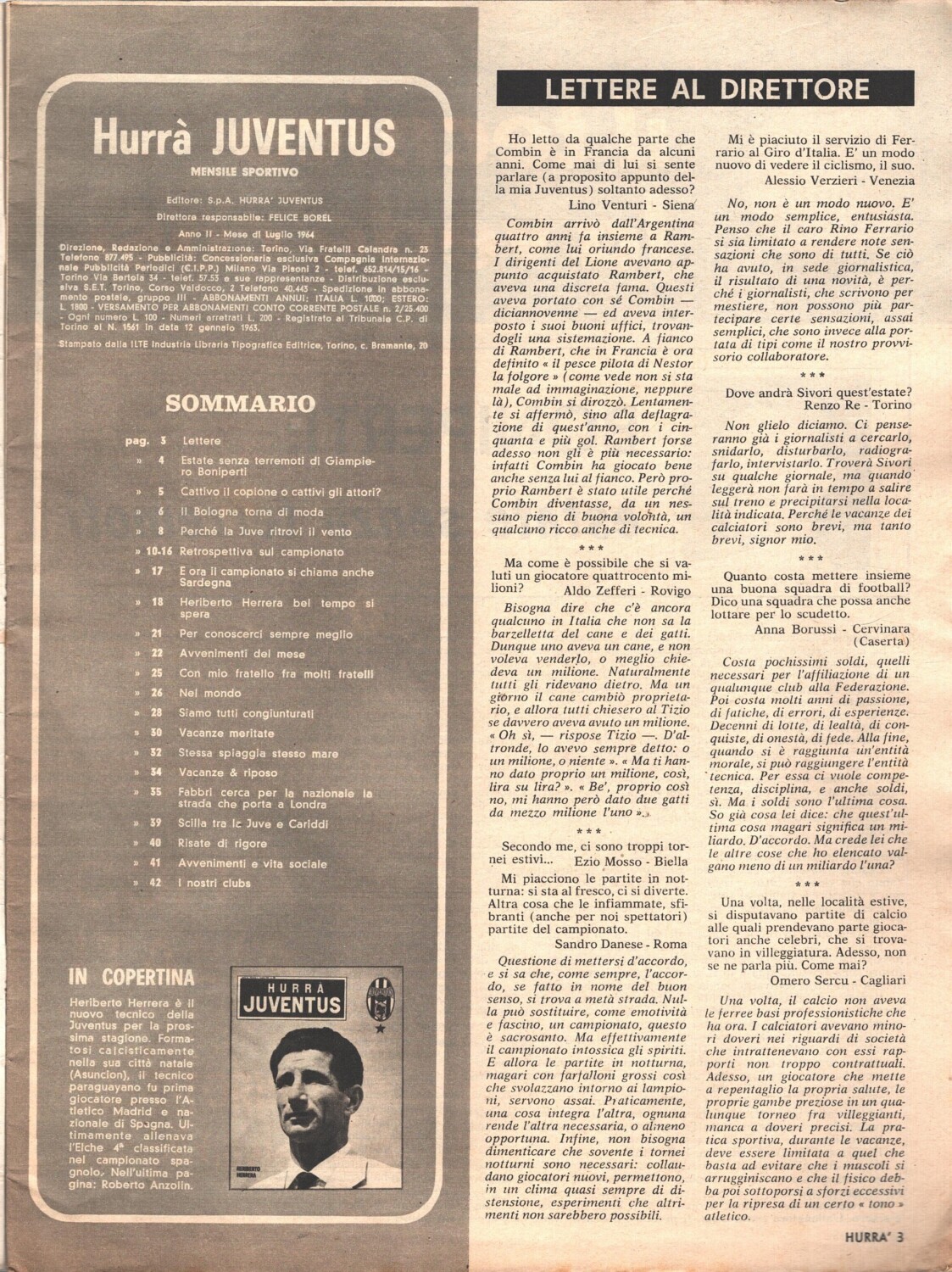 Hurrà Juventus n. 7 – Luglio 1964 – In copertina Heriberto Herrera