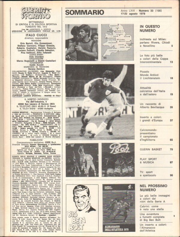 | Titolo: | Rivista Guerin Sportivo n. 33 del 17-22 Agosto 1978 – Elegimo Mr. Europa |
