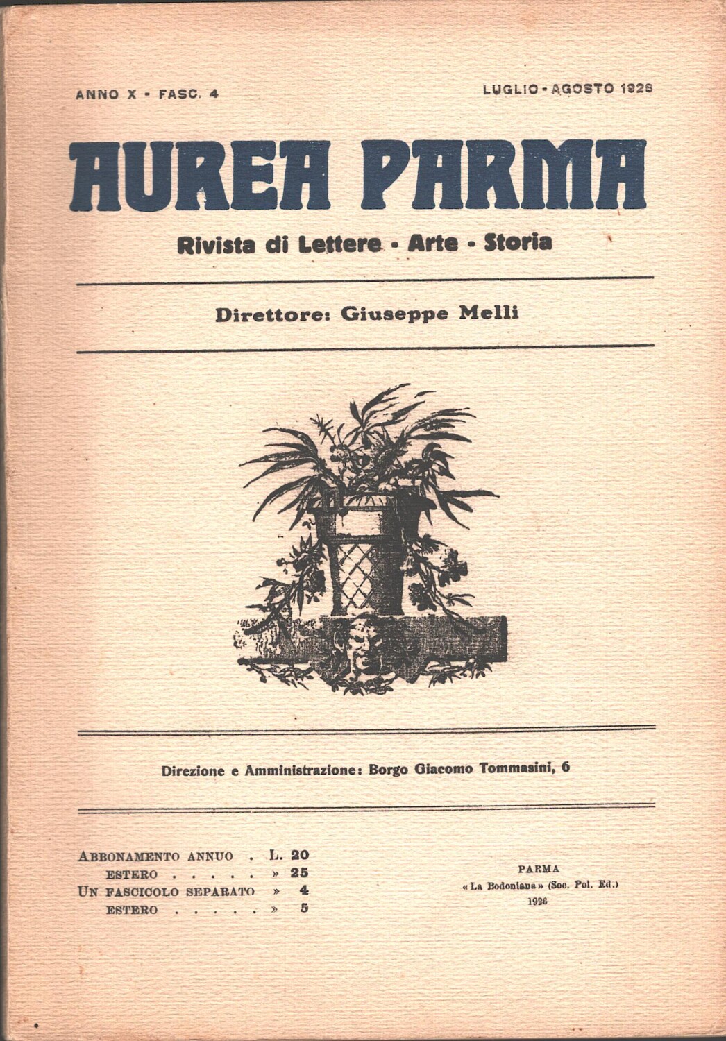 | Titolo: | Rivista Aurea Parma – Anno X Fascicolo 4 – Luglio Agosto 1926 ed. La Bodoniana |