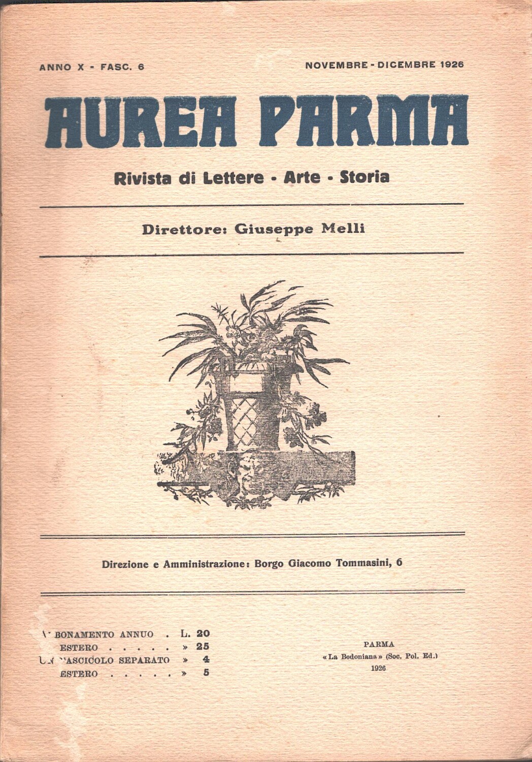 | Titolo: | Rivista Aurea Parma – Anno X Fascicolo 6 – Novembre Dicembre 1926 ed. La Bodoniana |