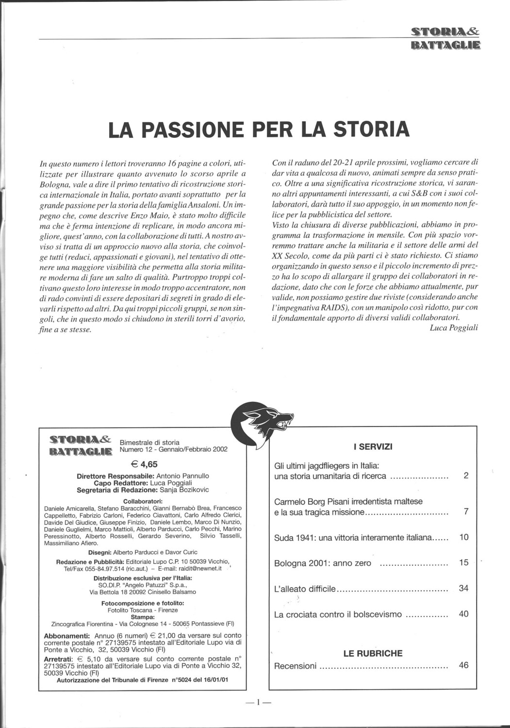 | Titolo: | Rivista Storia & Battaglie n. 12 Gennaio Febbraio 2002 ed. Editoriale LuPo |