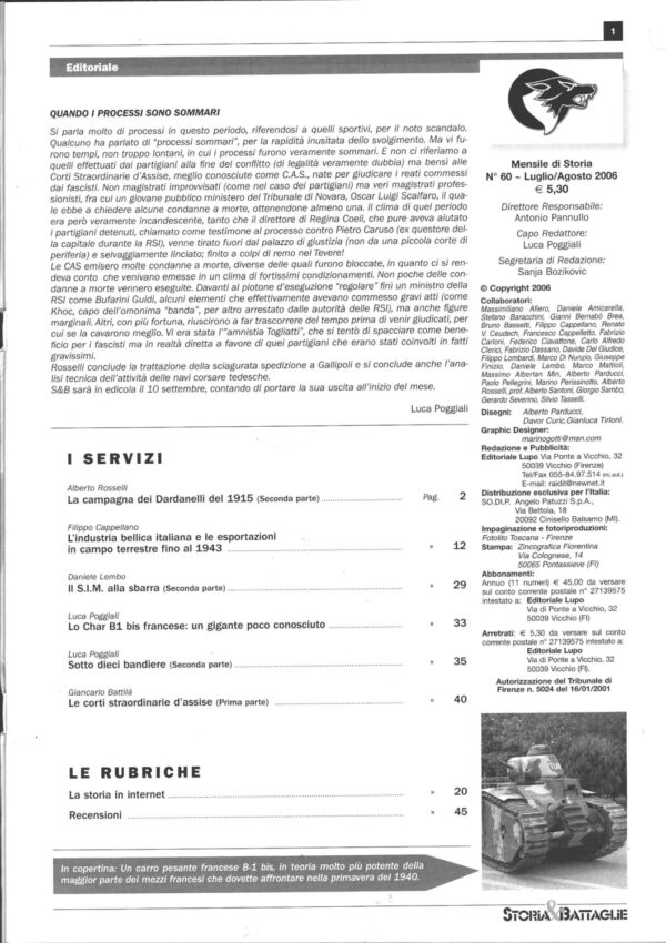 | Titolo: | Rivista Storia & Battaglie n. 60 – Luglio Agosto 2006 ed. Editoriale LuPo |