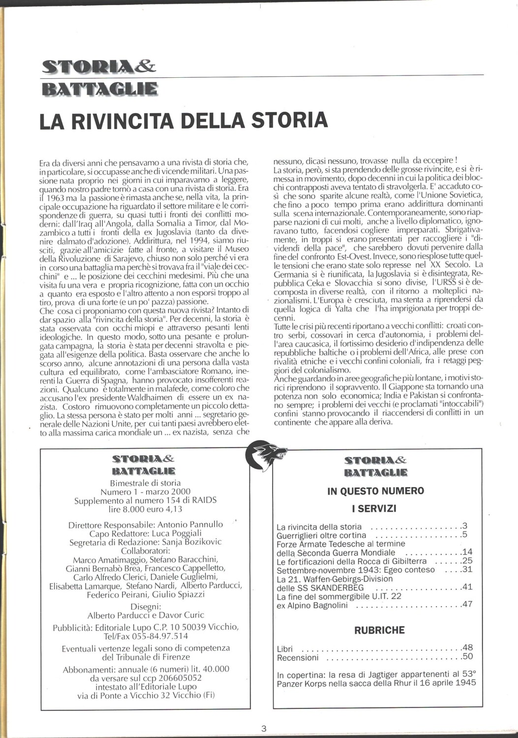 | Titolo: | Rivista Storia & Battaglie n. 1 – Marzo 2000 ed. Editoriale LuPo |