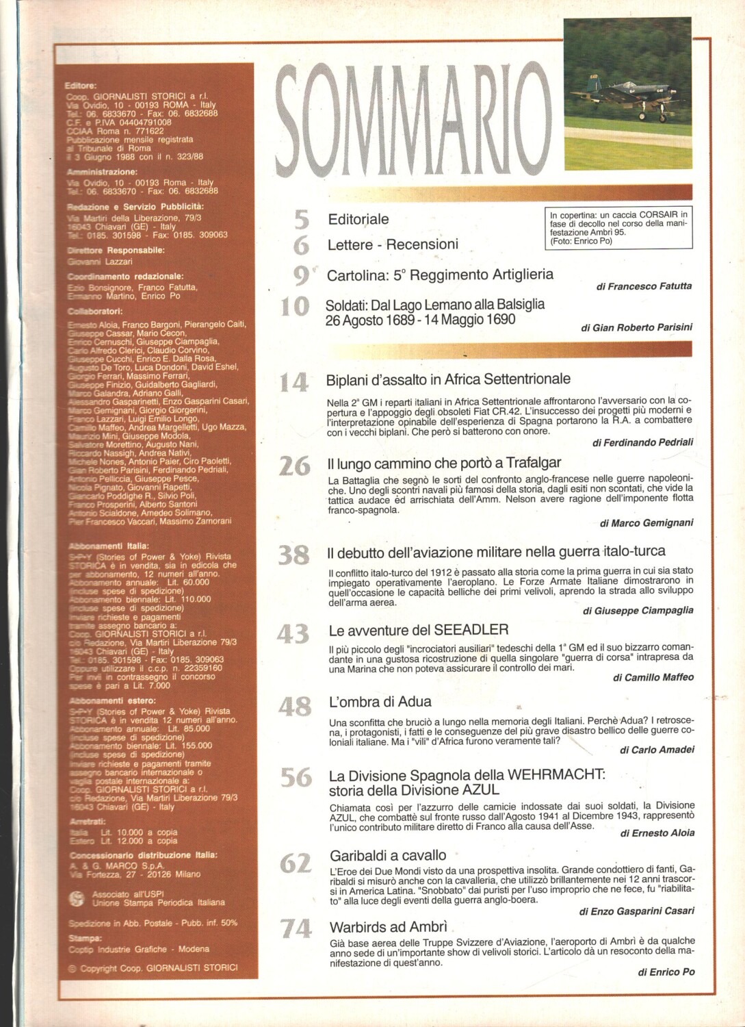 | Titolo: | Rivista Storica n. 10 – Novembre 1995 – In copertina Caccia Corsair ed. Giornalisti Storici |