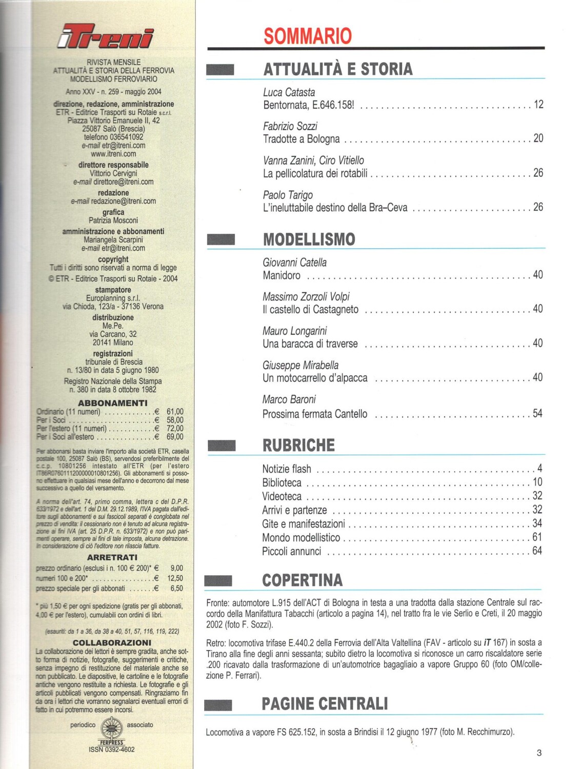 | Titolo: | Rivista I Treni anno XXV n. 259 – Maggio 2004 |