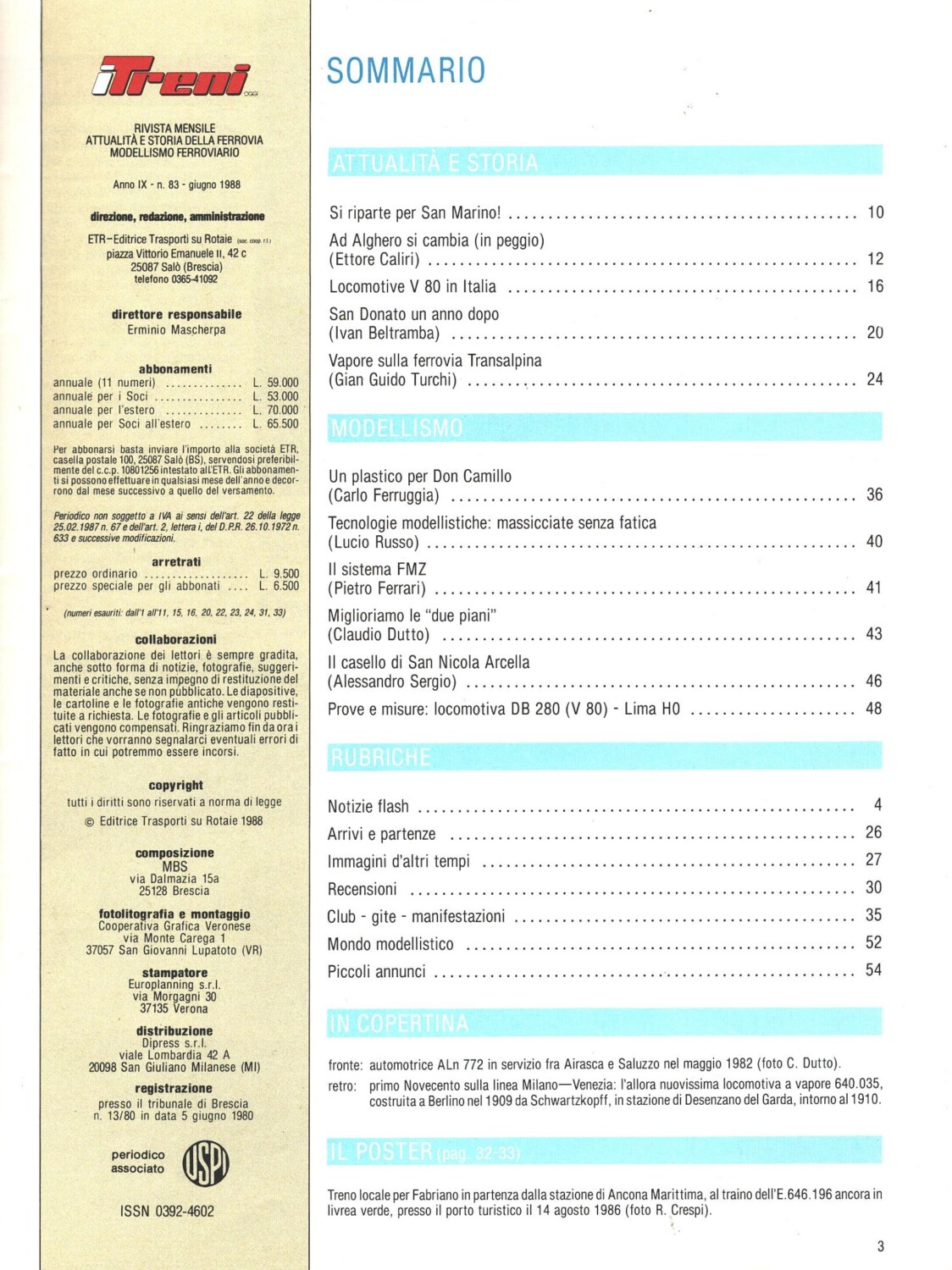| Titolo: | Rivista I Treni anno IX n. 83 – Giugno 1988 |