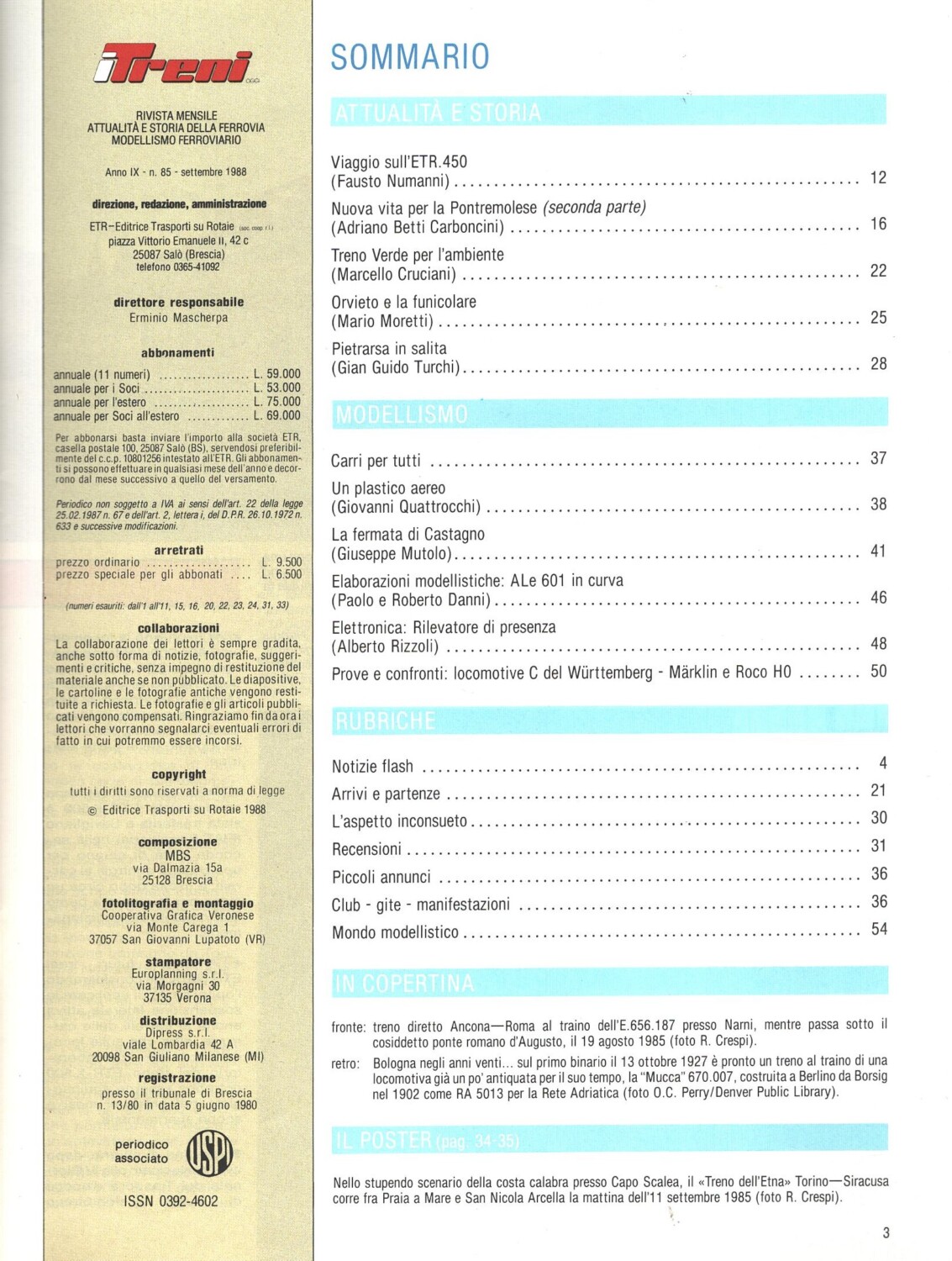 | Titolo: | Rivista I Treni anno IX n. 85 – Settembre 1988 |