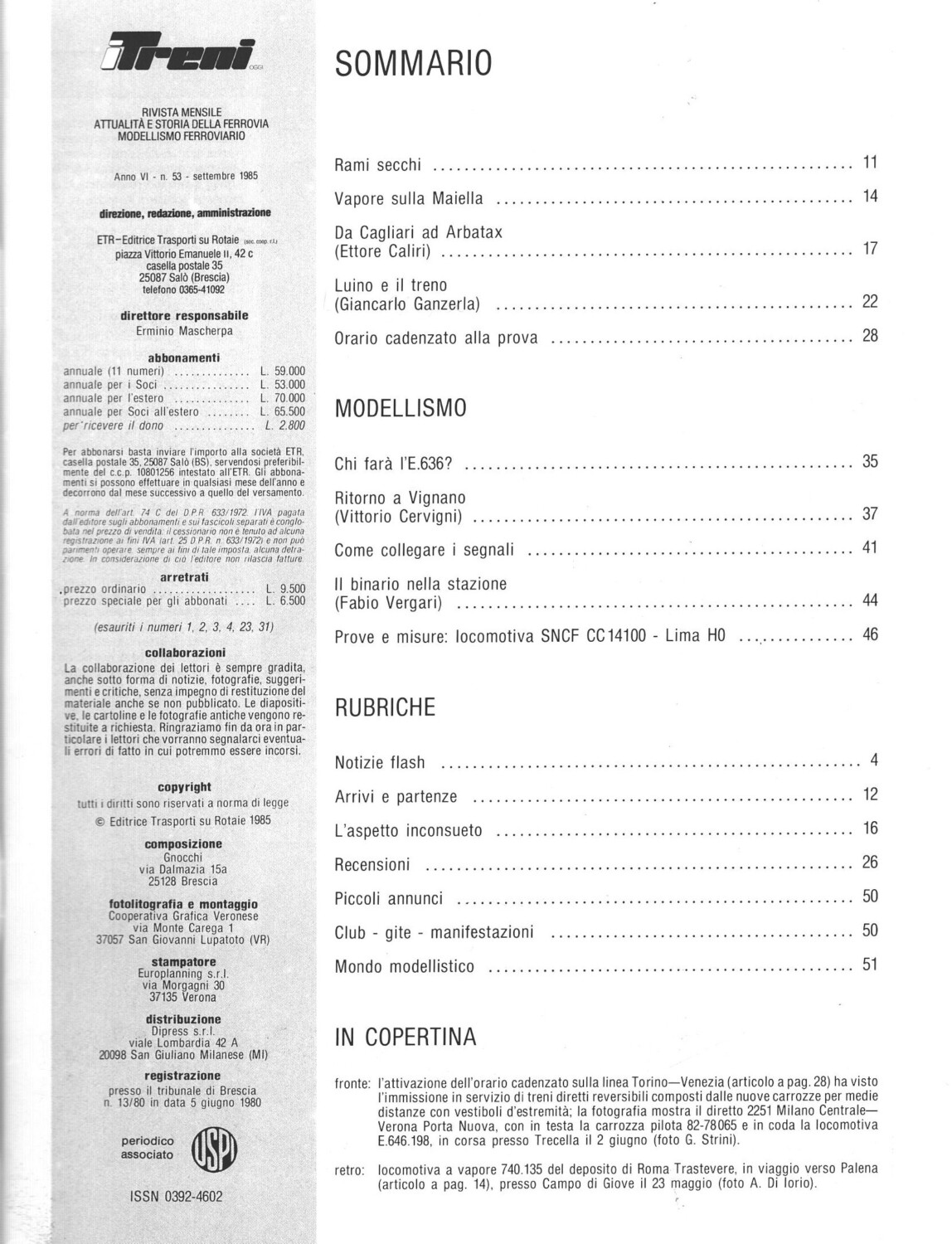 | Titolo: | Rivista I Treni anno VI n. 53 – Settembre 1985 |