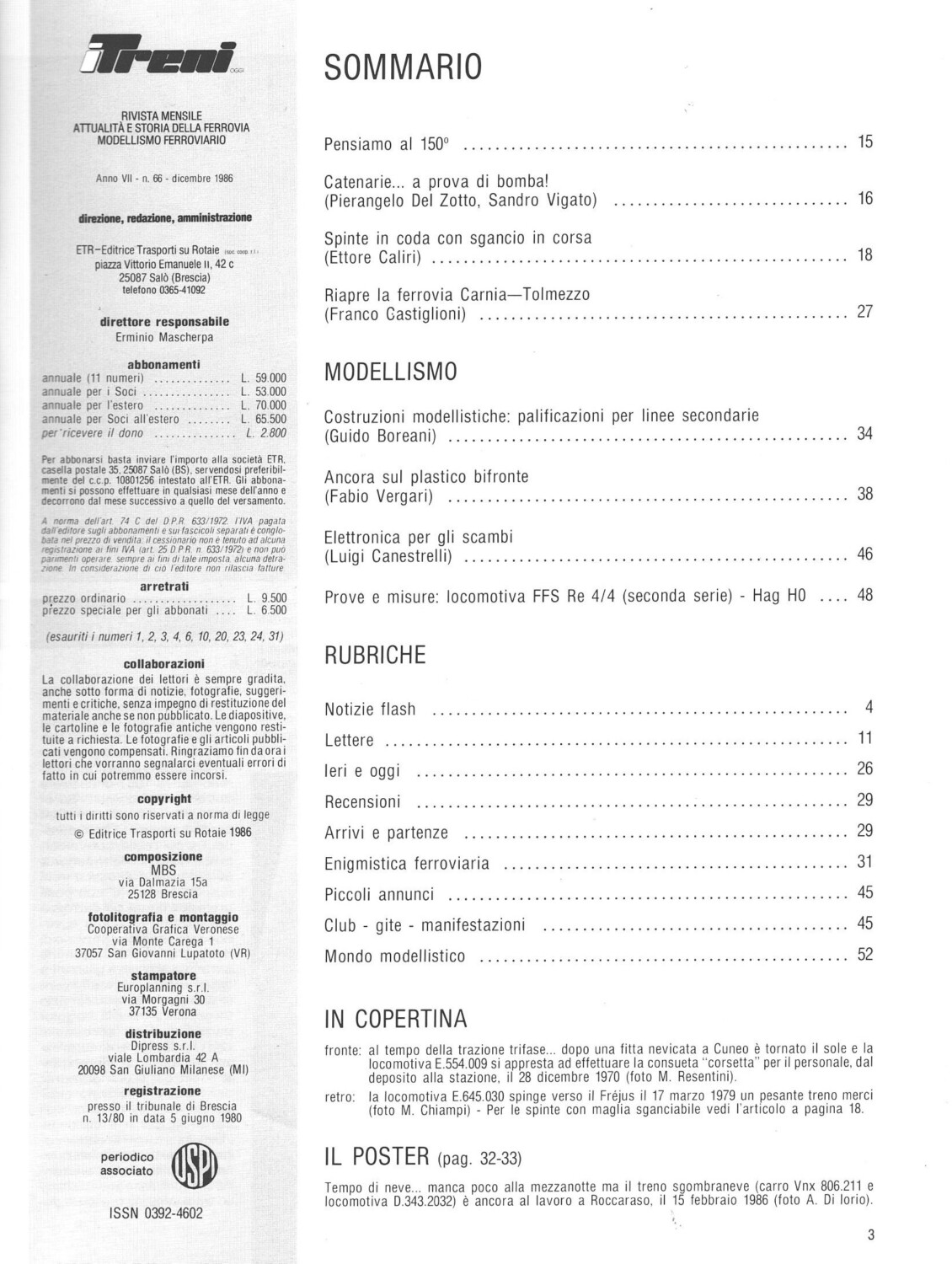 Rivista I Treni anno VII n. 66 – Dicembre 1986