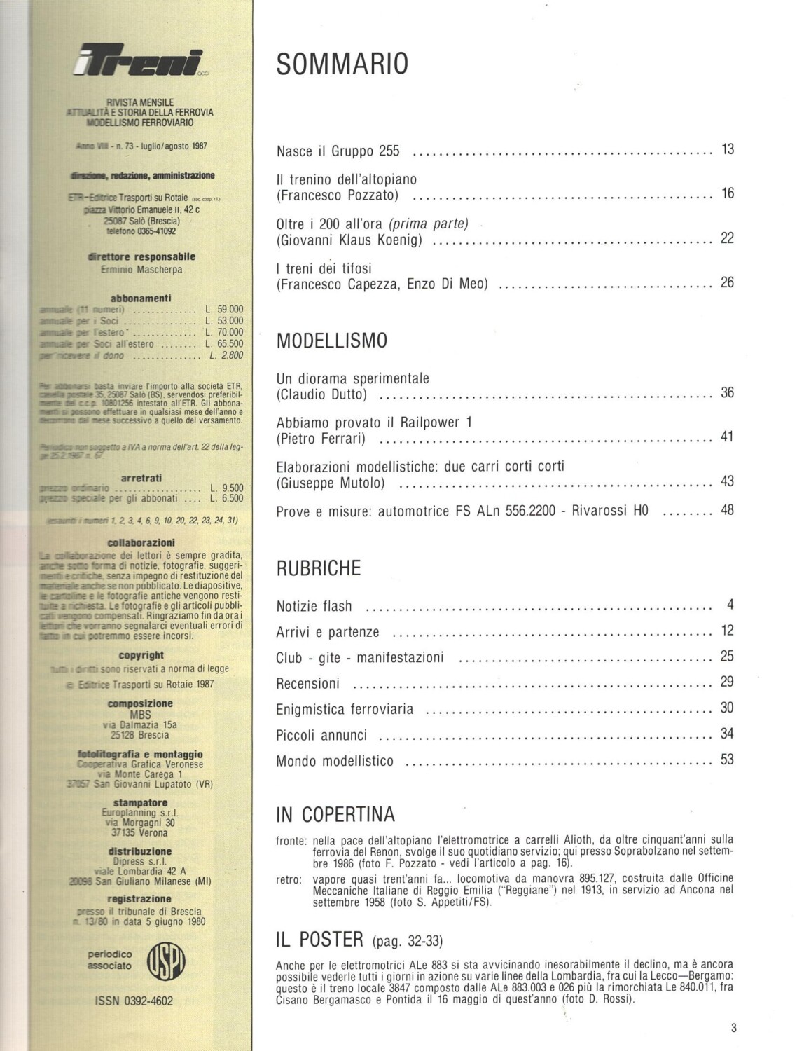 | Titolo: | Rivista I Treni anno VIII n. 73 – Luglio Agosto 1987 |