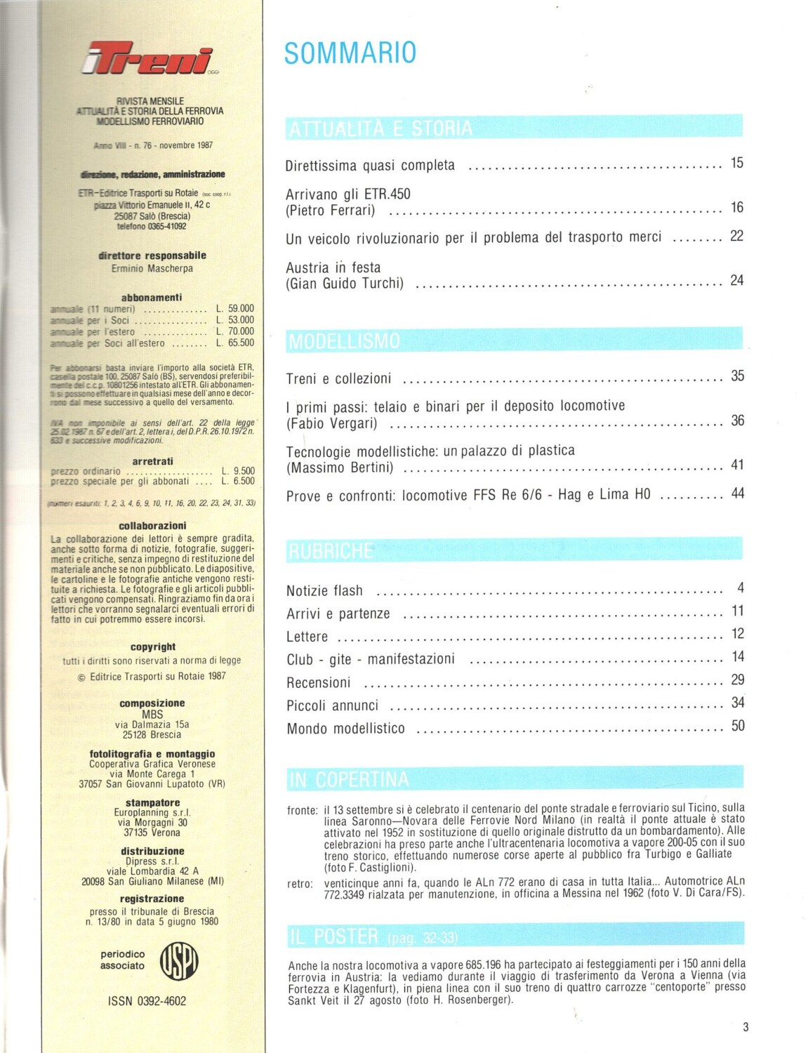 Rivista I Treni anno VIII n. 76 – Novembre 1987